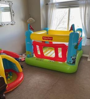 My toddlers loved bouncing in bouncer but also loved just laying in it watching tv etc. Loved the bouncer easy set up and take down.