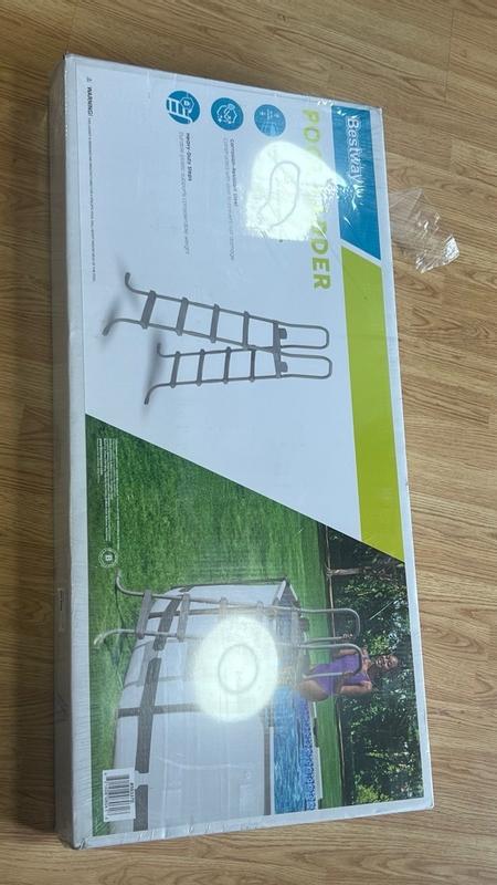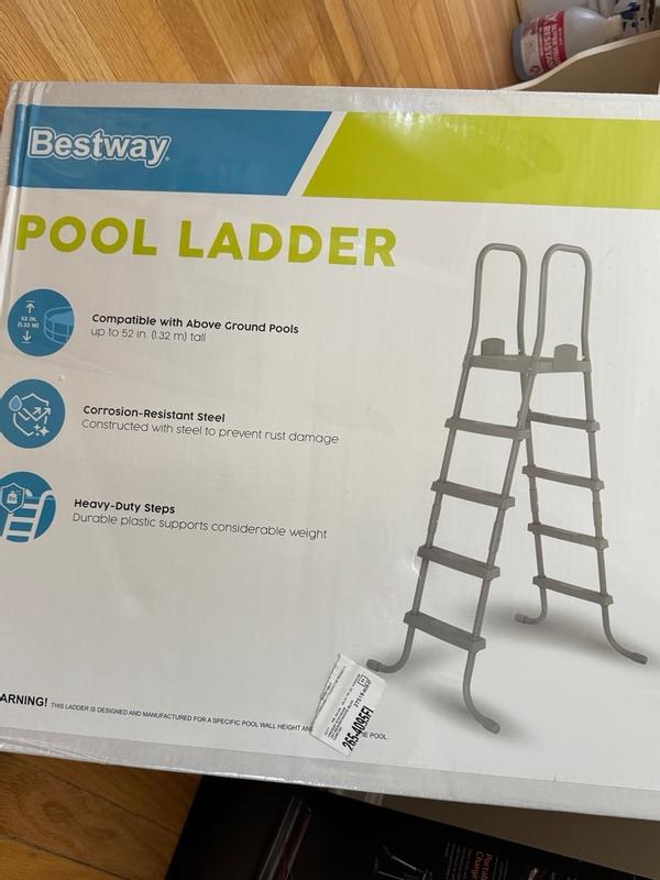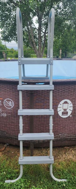 This flowclear 52-inch heavy metal A frame above ground pool ladder is durable and really well designed. The instructions are simple and this ladder is easy to assemble. The frame is made of durable coated metal, so it will last and not damage easily. The steps are double-sided so you can easily get in and out of the pool with ease. They prove great traction so we don't fall or slip accidentally. There is a 300-pound weight capacity for this ladder, so it can hold most adults with ease and is plenty wide enough also. I have a Bestway pool, and this replacement ladder is perfect for our pool. There is plenty of room to go in and out of the pool using this ladder, and it works great. High-quality product that is very well made.