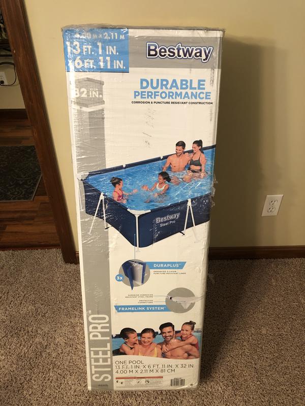 I recieved the bestway steel pro rectangle pool to try out in exchange for my honest review. This is a great pool. My yard is hilly and hard to find level area and this fit perfect. The whole family can float in it. It was asy to set up and maintain. Great quality.