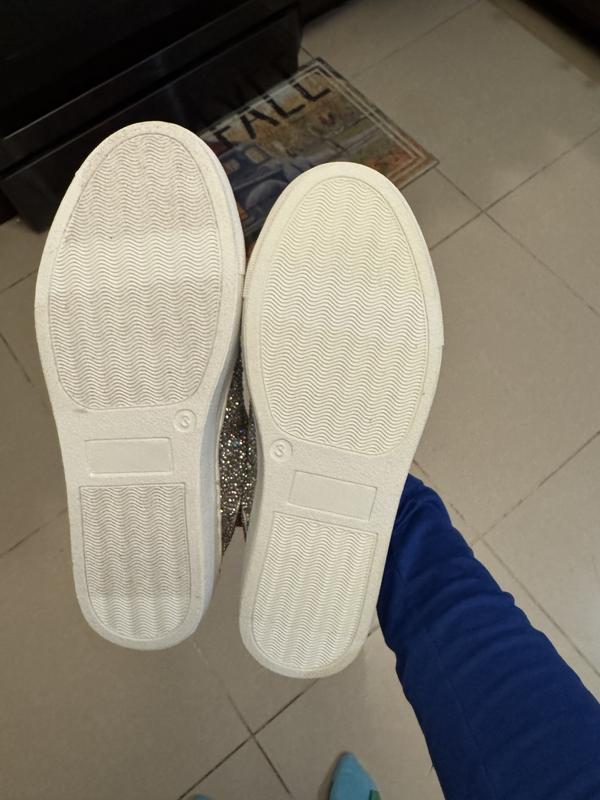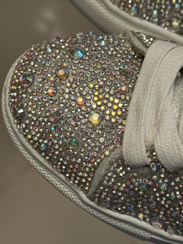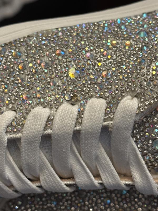 I cannot believe how bad these shoes are in person. One of them is clearly used. The rhinestones are all bunched up in clusters. There’s excess glue everywhere. Gems are cut in half and misaligned. Don’t waste your time.
