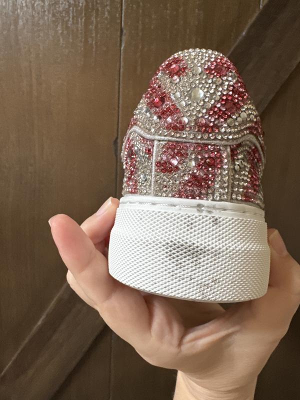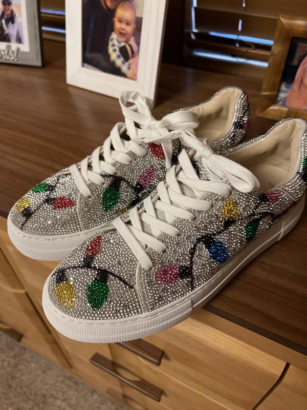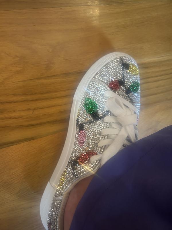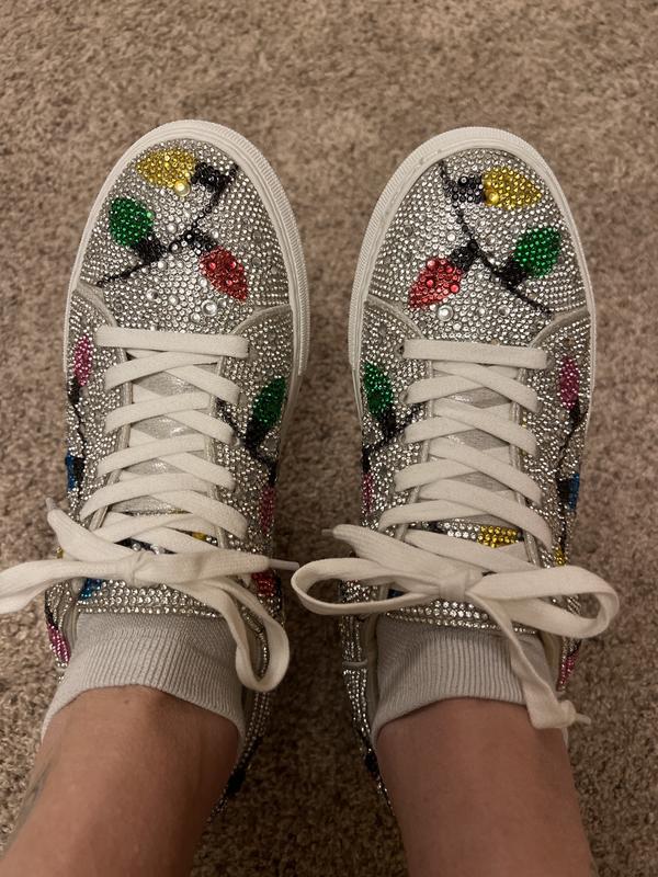 I saw a similar type of tennis shoe at a "discount" store however they did not have my size. I stumbled across these and so happy I did. At first I thought these will look clunky however they look adorable on! They are true to size. I wear a 9.5 and ordered a 9.5 and 10 because of the reviews stating they are small and/or narrow. I found them to be spot on in sizing. I almost thought that I could wear a 9 in these. However the 9.5 looks to fit perfect with a small little "no show" sock. Wearing them tonight...taking my hubby out for his birthday dinner and these are perfect ;). Great price, great fit and they look more dazzling in person. Do not hesitate to get them.....