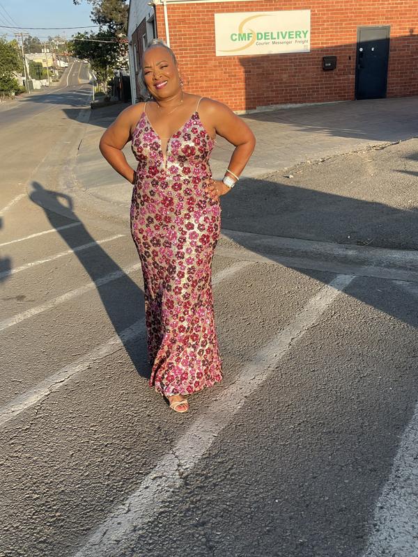 Petite Floral-Sequin Mermaid Gown