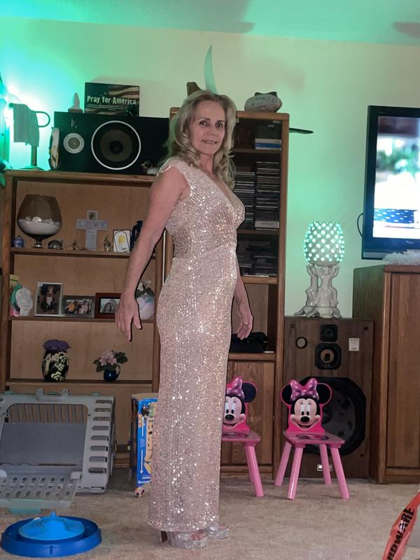 I was looking for a dress for my daughter‘s wedding. This dress is exciting sexy, comfortable beautiful. However , it is not the statement I want to make as mother of the bride. This dress would be fun to wear to a New Year’s Eve party on a cruise or some kind of formal event I will be returning it, and my search is still on for that one dress. I am 5’2 125lbs I chose a size 6p it fit just right. I always make sure I go with their size chart because all designers sizes are different.