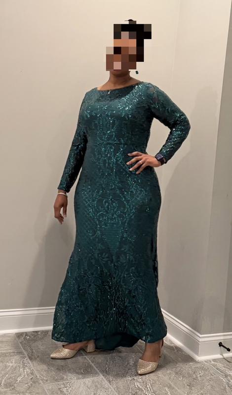 B&A By Betsy and AdamBetsy & Adam Plus Size Sequined Long-Sleeve Sheath Gown