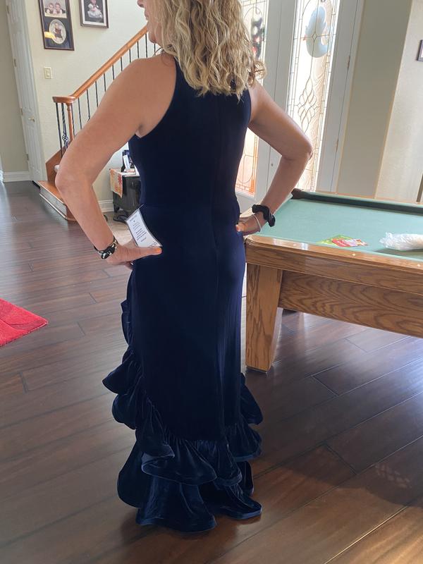 Ruffled Velvet Halter Gown