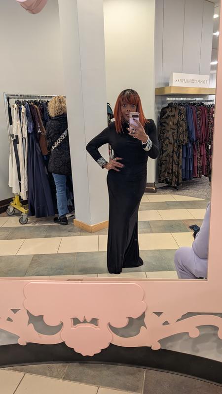 I walked in the store needing a gown for Italy it was the first one that I saw. It fits like a glove absolutely beautiful in person