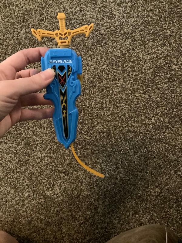 My son is a big Beyblade fan and this was a great addition to his set. Similar to all Beyblades, you put the disk on the gold disk onto the ripcord and pull. The harder you pull, the faster the disk spins. This one is cool because it looks like a sword.
