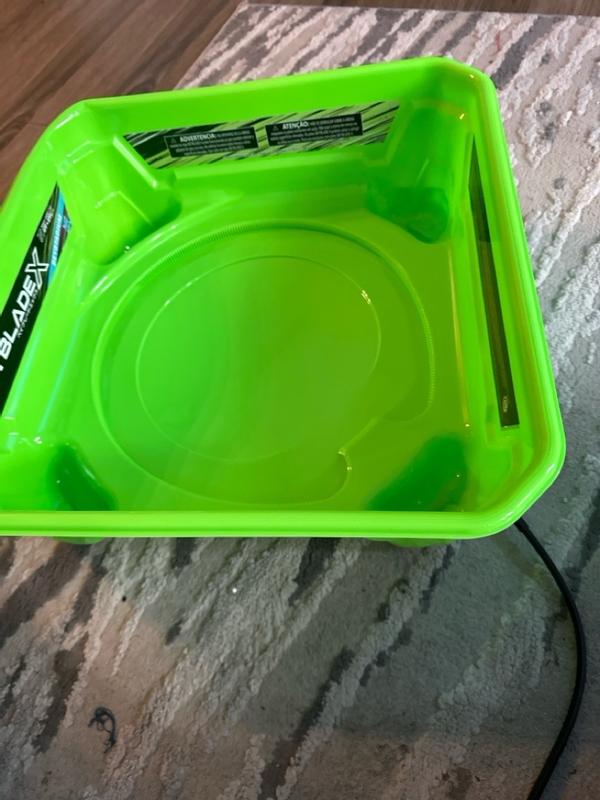 It spins very fast when pulled, it doesn’t need to be used with the play arena that they offer. It is very fun to play with and you can do it on tile or the tub or hardwood floors as well.