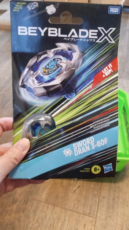 The Beyblade X Sword dran 3-60F Starter pack set is made of plastic and metal making it very durable. When the gear of a Beyblade X top engages the rail of the Beystadium arena, it can super-accelerate into an Xtreme Dash rocketing it around the stadium for crushing collisions. The package it bright and striking. The Beyblade is very durable which makes the value worth, but if it comes with an extra Beyblade it will help have an experience battle instead of just rocking around the arena by itself.