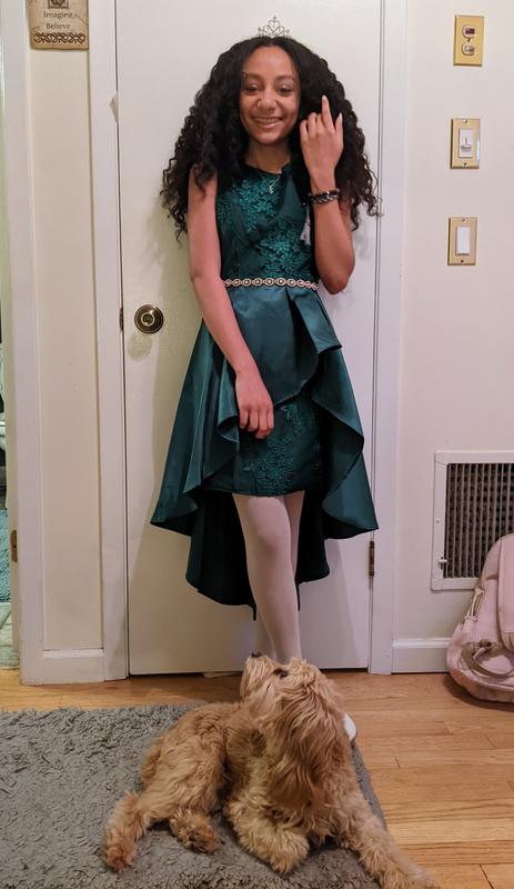 Big Girls High-Low Embroidered Mikado Dress with Asymmetrical Overlay