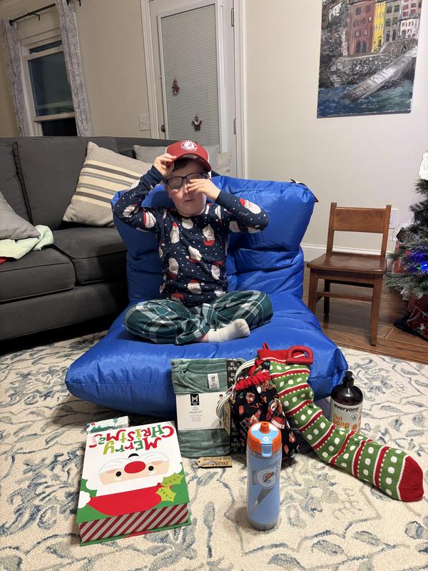 This Big Joe Roma is the perfect seat for gamming or watching tv or just to sit and relax .it comes straight out the package as it is filled with foam beads with a saftey zipper on the back for kids bot to get into it . But the material is pretty strong and comfortable . And if it ever gets some what dirty you can just take a wet rag and it comes up . Other then all that its a bretty nice chair id reccomend for kids . Sits low to the floor .