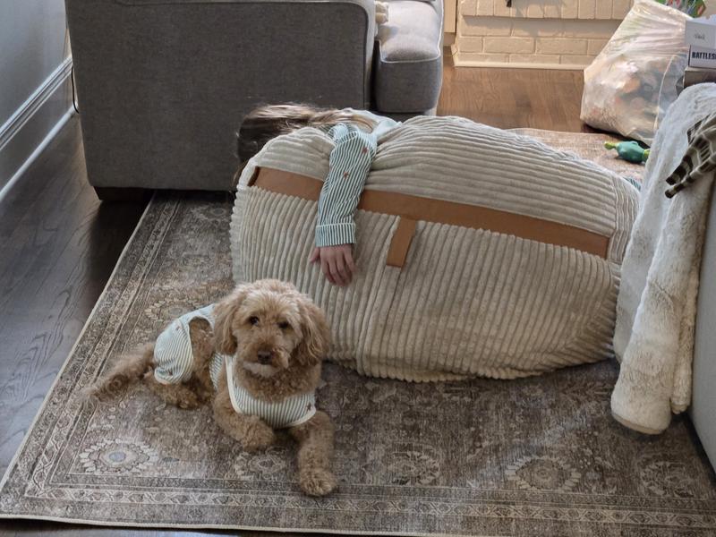 The product is well-made and sturdy, but….. I was hoping this would be more like a beanbag that my grandchildren could sink into. It’s actually much larger than I had anticipated and they just teeter on the top of it. My mistake for not researching it better.