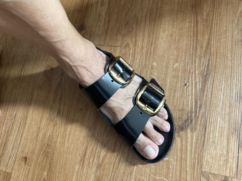 Beautiful and comfortable. I purchased these for vacation because they are not as casual looking as the other birks and dress up your outfits. Very stylish with the big gold buckles and comfortable.