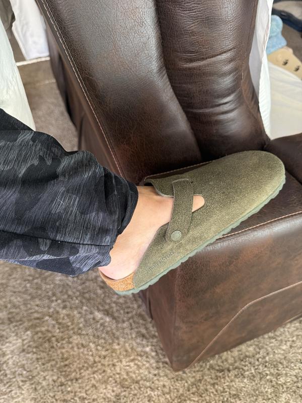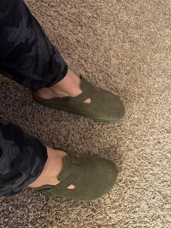 This is a very sturdy, slip-on shoe. The suede top is very firm, not soft. From the picture, I could not tell if the top was soft or hard. I’ve been looking at this Birkenstock clog, in the olive color, for some time now. Finally, I decided to buy them. I am happy with them. I can’t wait until they are fully broken in.