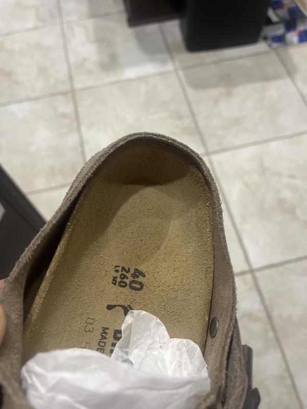 It’s a typical Birkenstock shoe…..well made but runs a little small for the usual size 38 more narrow and shorter but fits without big socks