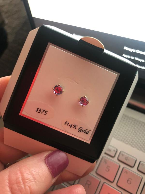 I purchased the Ruby, Opal, and Blue Topaz...they were darling with one exception; the back of the Ruby earring set was broken, and the tags were webbed into a sticker to where you couldn't get the tag off without fear of breaking. I am going to have to go into Macy's to see if they are going to replace the backs that came broken, if not, I will be returning which I don't want to do. The gems themselves were phenomenal. Whomever packages the earrings needs to come up with a different way of putting the tags on to replace utilizing the sticker method.