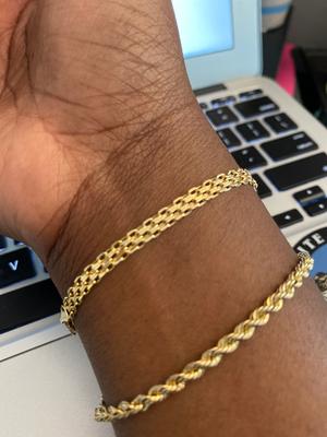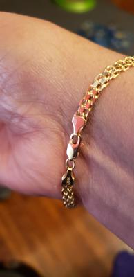 This bracelet is of very poor quality, it weighs nothing, very fragile, hollow, it breaks easily everywhere. I don't recommend it