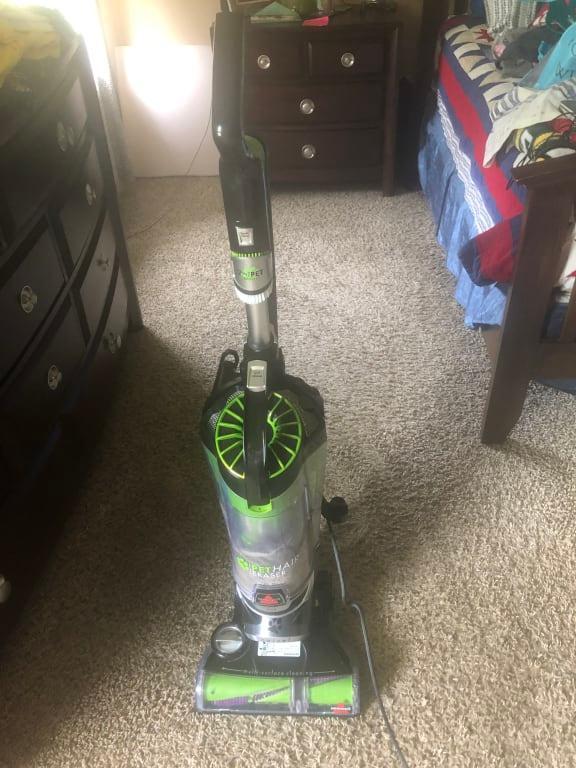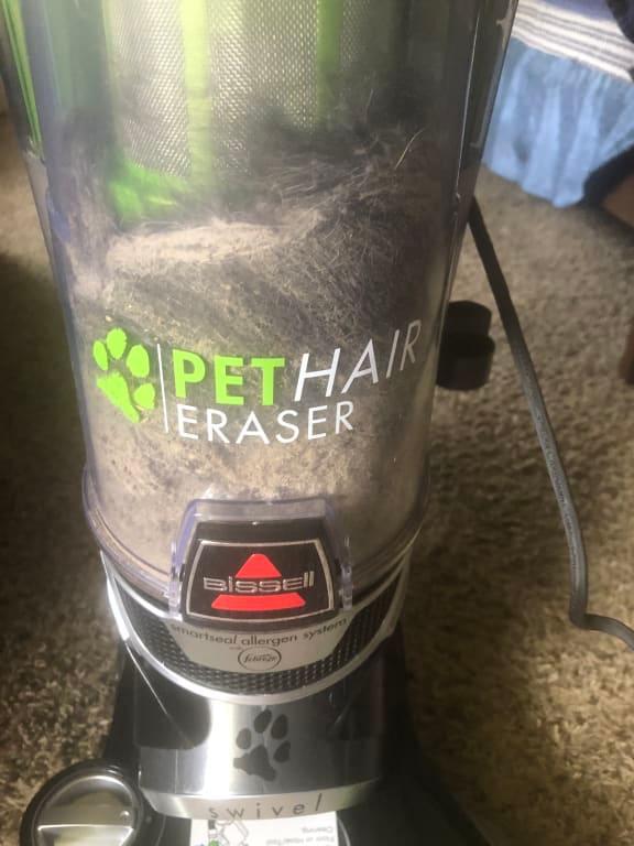 (This review was collected as part of a promotion.) Everytime i have to vacuum I get heated. I have equal amounts hardwood and carpets. With 2 large dogs I prefer to vacuum a sweeping causes the hair to fly around. This vacuum is notorious for spitting debri out behind it when vacuuming floors causing a bigger mess. The attachments have become pointless. The mini vacuum attachment stopped working shortly after we got it and when we try to use the other attachments there isn't enough suction to make it worth it. Vacuuming with my other vacuum was only a 10min job, with this vacuum my time has doubled because I'm constantly having to go over the same areas. I've had many bissel vacuums throughout the years, but this, by far, has been the biggest disappointment