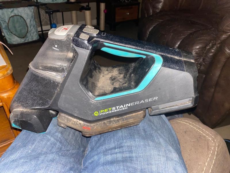 Only used a few times... really not a fan. I tried it in the car and not great for seats; the surface area of the part that touches the seat is too wide but too narrow at the same time it doesn't get into the creases of a seat unlike the little green machine which I really wanted but couldn't afford it at the time. And the suction to get the water/cleaning solution back up well just sucks... my seats were still soaked and I barely used any solution...