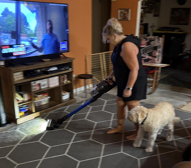 Sturdy, well balanced so it feels light to use! Love the headlight! ( although it can be a bit horrifying at first to see all the dog hair and dirt) Powerful machine, 1 sweep picks everything up!