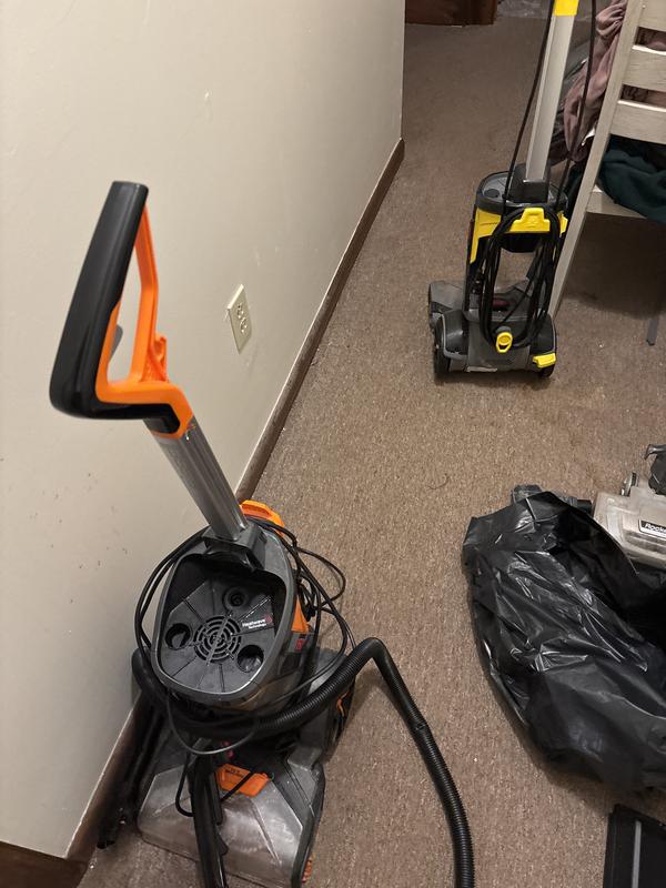 This is a nice carpet cleaner for a very affordable price. It’s no harder to push around than a regular vacuum cleaner and it gives a good deep cleaning. I was able to clean about 50 sq ft of carpet per tankful and the carpet dries within a few hours. Great for spot cleaning, but a little less convenient for cleaning large areas due to the need to empty the waste tank and refill the cleaning solution. I found these two things would coincide almost all of the time. Just follow the instructions and it’ll do a great job for you!
