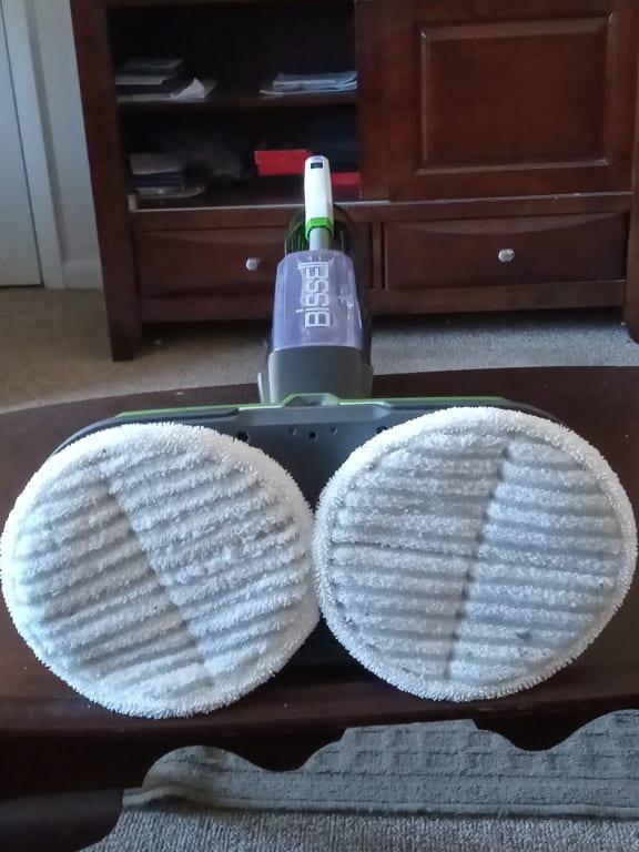 Not knowing if my floor is sealed is wasting the nice bottles Bissell included. The operation of the machine is overall ok, it can be a bit to handle as the mops do not counter rotate so it yaws. I do like the pivot of the head, nice! The handle needs a back side as I am stronger and I needed to grip it hard to keep it slipping as I said from the yawing of the machine (wanting to pull a bit sideways). I think the material is top rated, well made. The liquid disperses well although I can only use water.