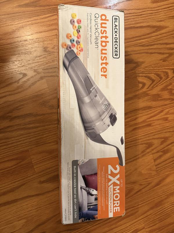 I am so impressed with the suction power of this little dustbuster quick clean cordless hand vacuum. I love the extendable attachment that stays on so you don't have to carry around accessories. It has an easy mount charger that makes charging a breeze. I use it all around the house and in my car. It can reach little crevices and so powerful to suck up crumbs and dust. This is my new go to around the house!