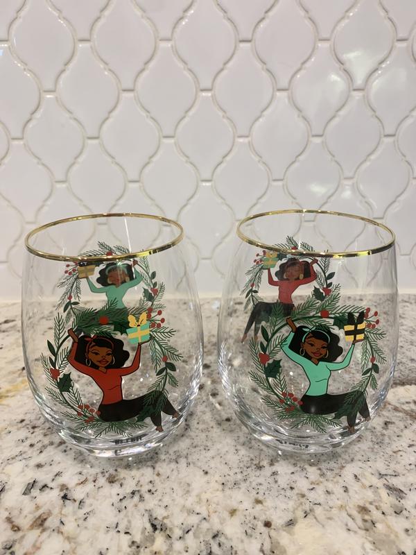Shark Tank Holiday Holly Stemless Wine Glasses, Set of 2