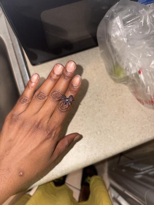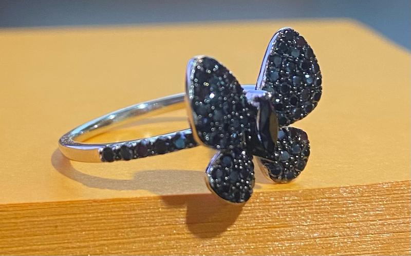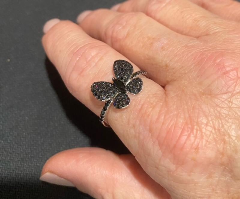 Nice black spinel ring. Right size and comfortable to wear everyday if you want to. Been looking at this ring a long time. Like butterflies and sparkly black.