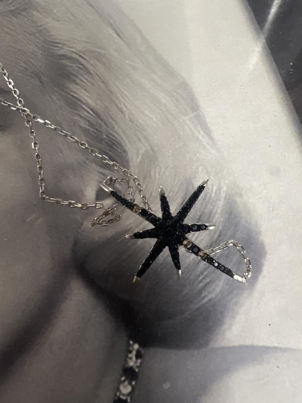 Macy'sBlack Spinel Starburst Pendant Necklace in Sterling Silver, 18" + 2" extender