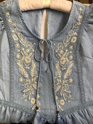 Love the over all dress but runs tight in chest area. I’m a large size 10, but this dress runs small. I will keep it but when it needs cleaned I will have it dry cleaned. I can’t have it shrink. It is a pretty summer dress!