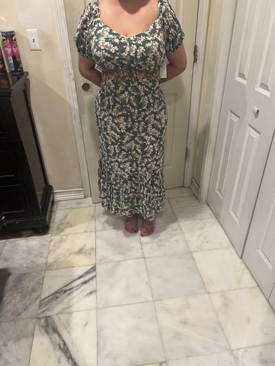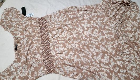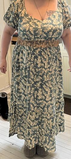 I was very disappointed in this dress. Granted, my normal size got away on the very same day I was going to order it, but that was not the primary problem. The material was fraying around the smocking when I pulled it out of the bag and it felt cheap. I tried it on and the cut of the dress was not as flattering as shown in the picture; it was an uncomfortable low cut in the front and the elastic in the sleeves was tight. I own another dress by this maker that I love so I was really surprised how different this dress was. I will be returning this one ASAP.