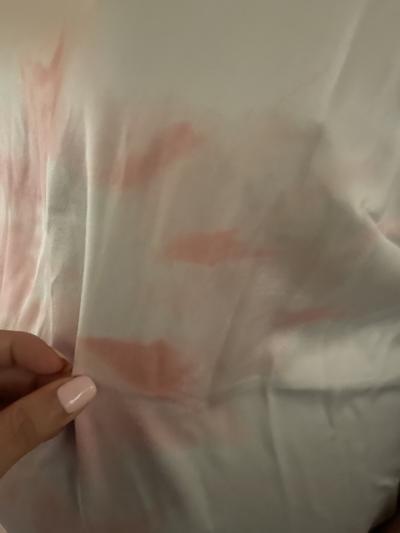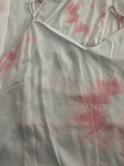 The style of the dress is beautiful, but unfortunately the lining stops below the breasts. The fabric feels nice and breezy and the straps are adjustable. I would like this dress other than the lack of lining and the print looks like random peach blotches.