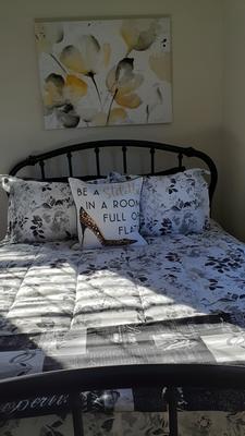 I love this Comforter and yes it is lightweight which is why some comments stated it's not good quality but it's exactly as stated and what I wanted here in Florida. It gets hot. I'm sure in cold states it would not be beneficial. It's a true Queen. Ample width. I had a black bed skirt already & wanted to get away from all dark bedding and have a more cheerful, lively and inviting look and this fit the bill plus saved buying a bed skirt since one wasn't provided.
