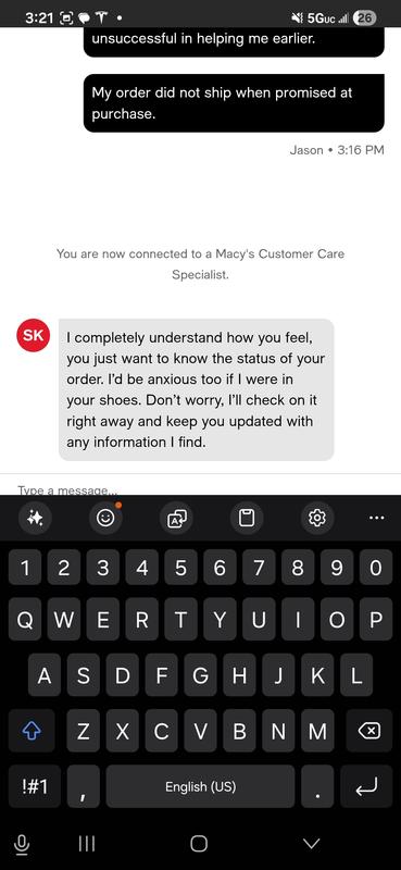 I bought these based off their advertised "arrives in 3-5 business days". Once I realized they were not vding delivered within that window I requested a refund, which they would not provide. They said I had to wait until they arrived and then return then at a store (which is one hour from my house). I ended up buying replacements and still not so here any more. Very poor service..not the Maceys I've one loved for many decades.
