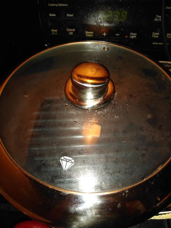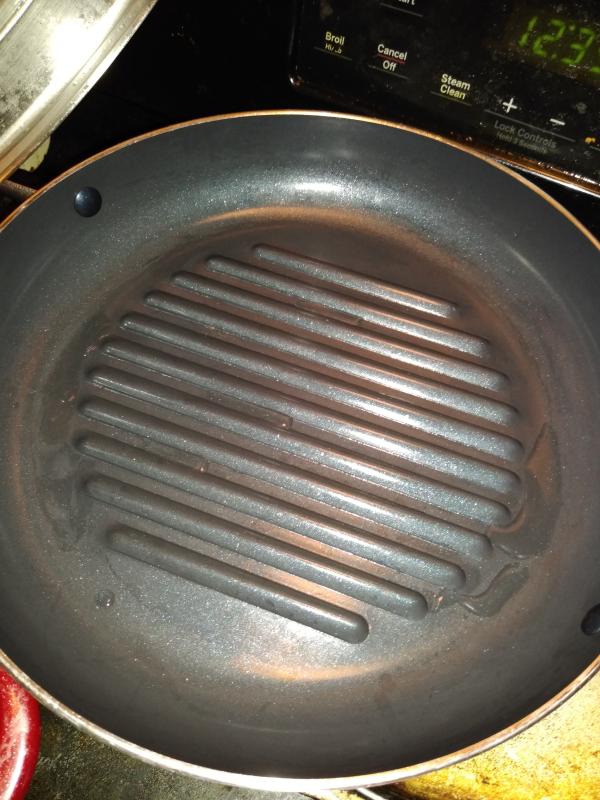 I bought this about a month ago and have used it for steaks, etc. I have one problem and that is with the lid. The knob on the lid is hard to grip. It's slippery to the touch, almost dropped it.