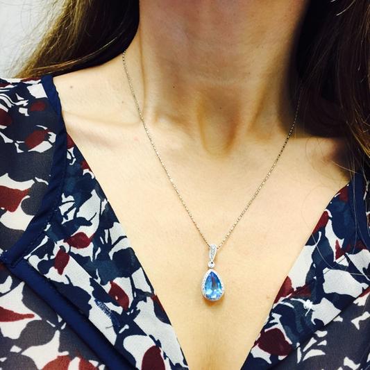 Blue Topaz (3 ct. t.w.) and Diamond (1/10 ct. t.w.) Teardrop Pear Pendant Necklace in 14k White Gold (Also in Mystic Topaz)
