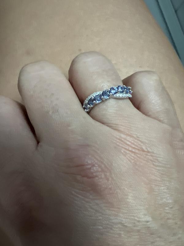 I received this ring a few days ago in a size 6 it fits however I believe it is very slightly larger than a six but not a 6 1/2. The ring is very shiny, and the stones are very bright and glittery. The blue is Pale Blue which is very pretty. Definitely worth the price I think I got it on sale. I’d be tempted to buy it full price as beautiful as it is.