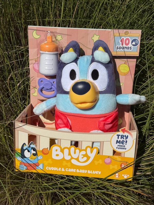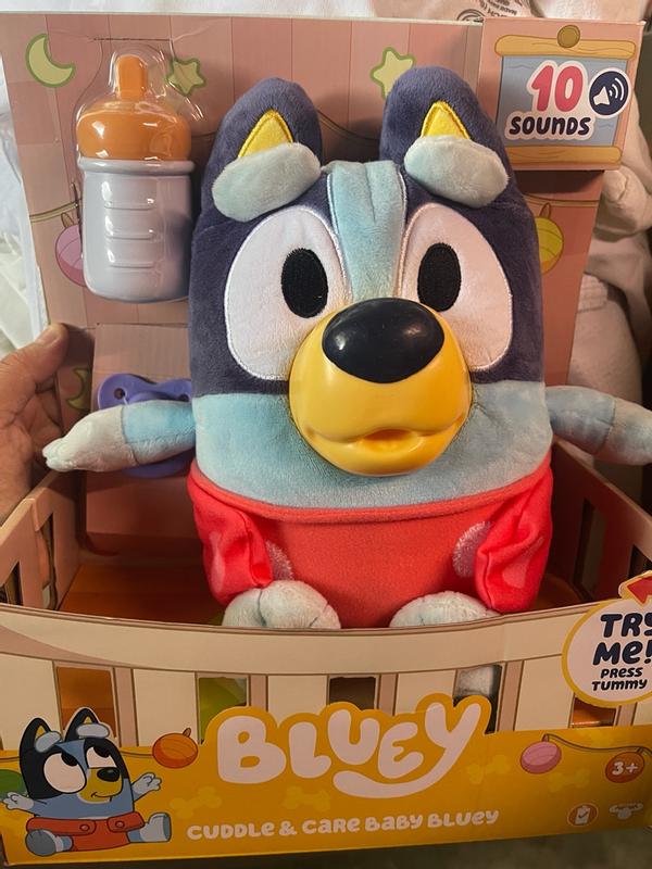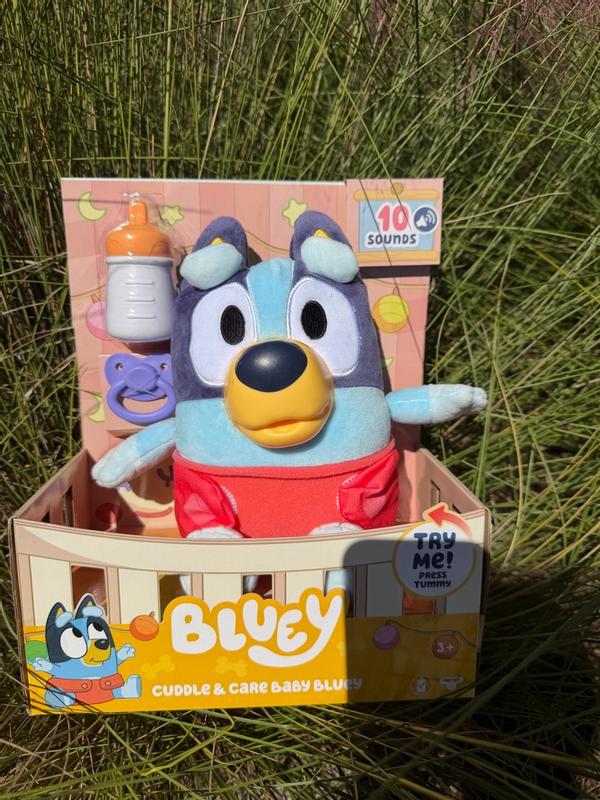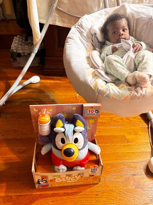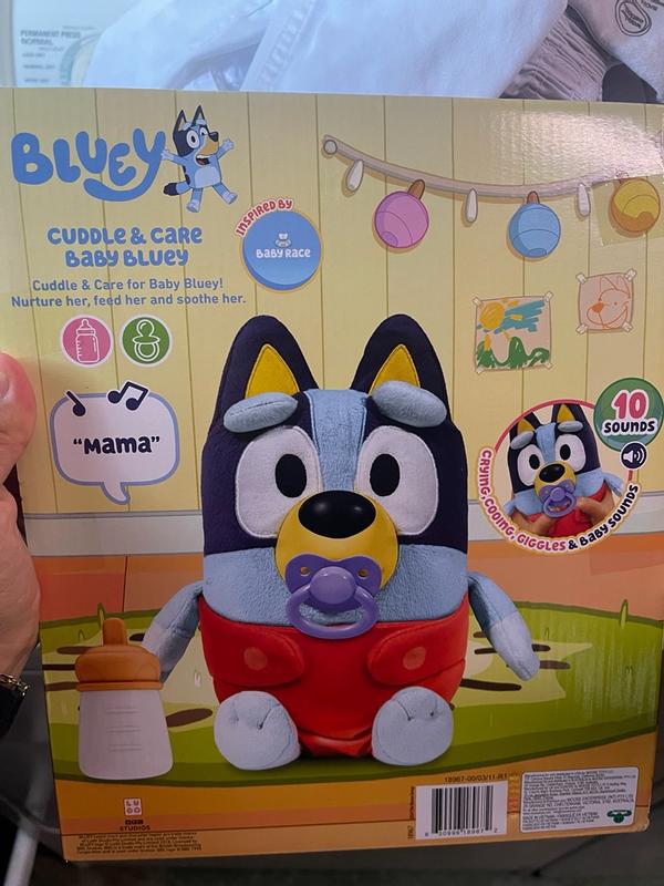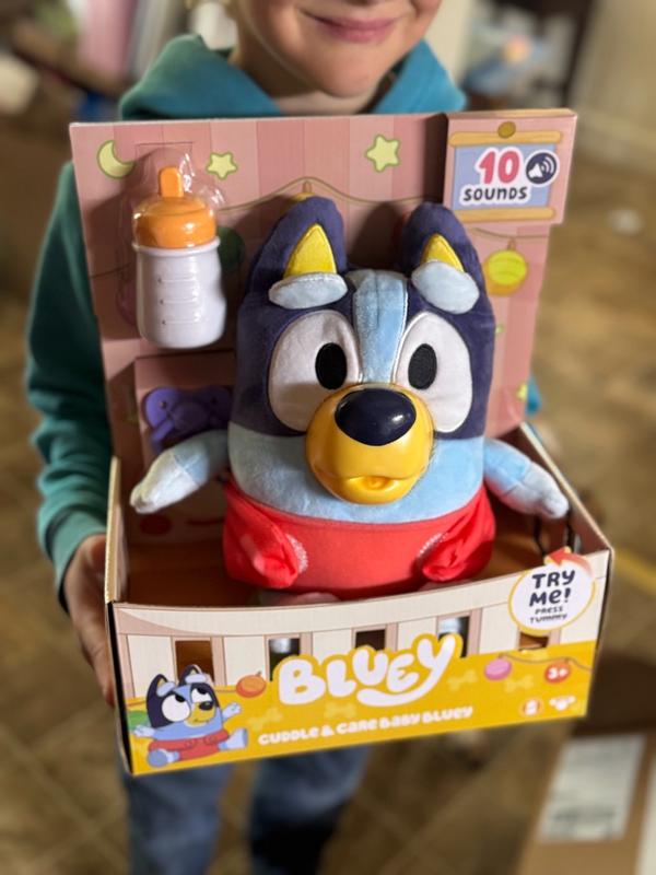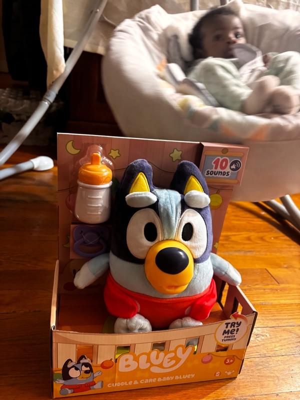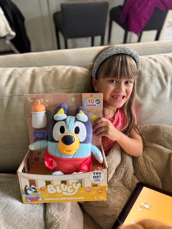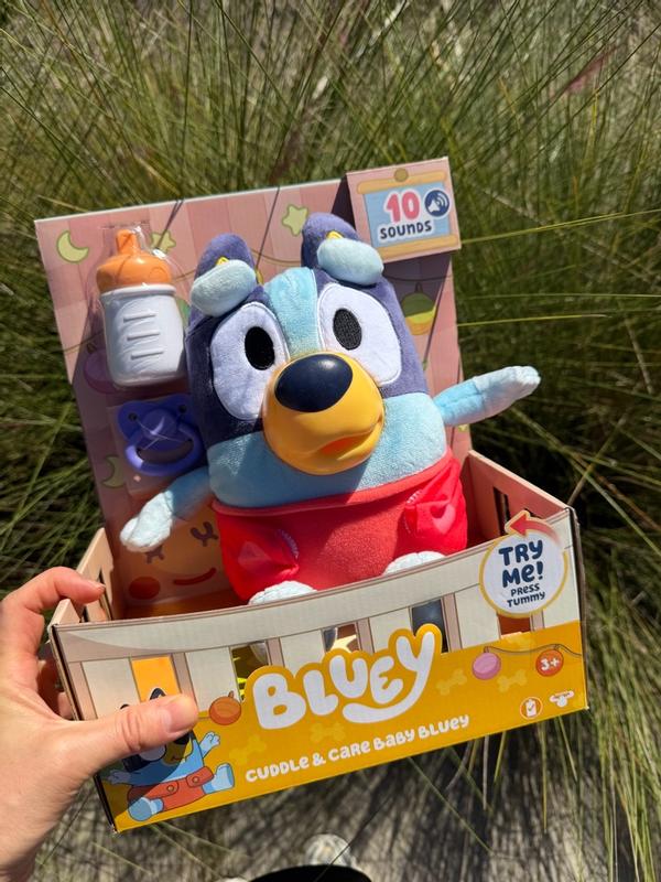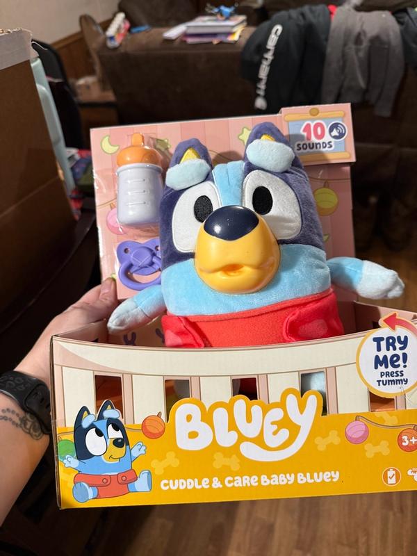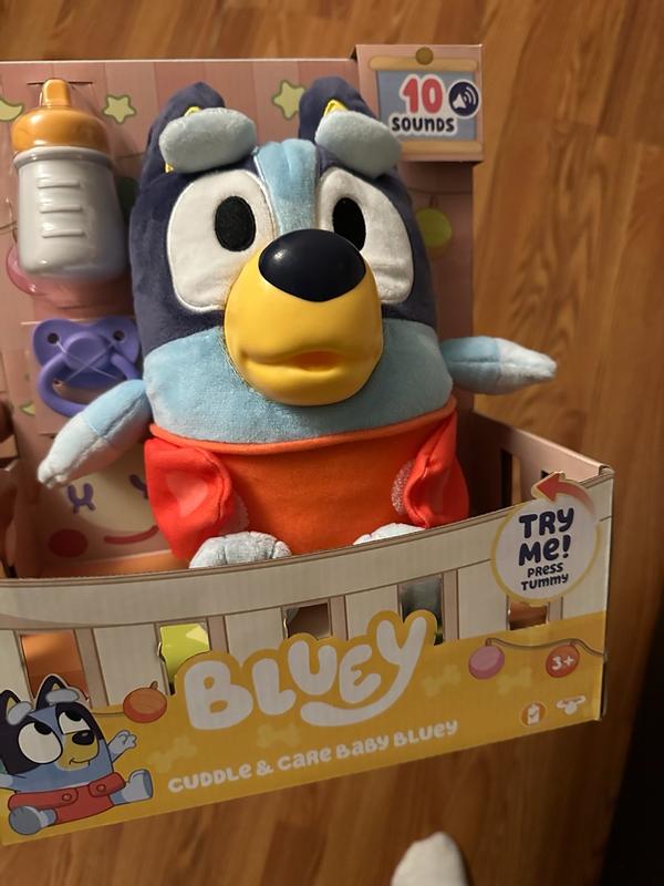 My daughter is obsessed with this Bluey cuddle and care baby plushie. It’s adorable! It’s soft and some hard spots, but you can also put in the bottle and pacifier in the mouth. The plushie also makes cute sounds when you press the tummy. She takes care of it like a baby, and is still holding up just fine. It’s such a cute and great quality toy.