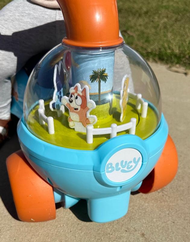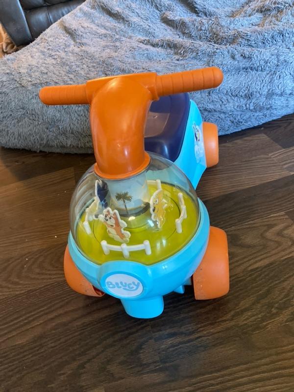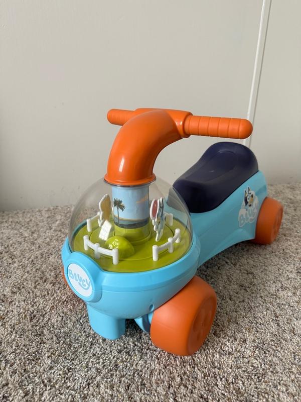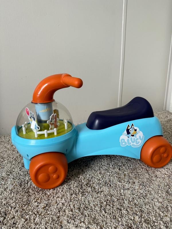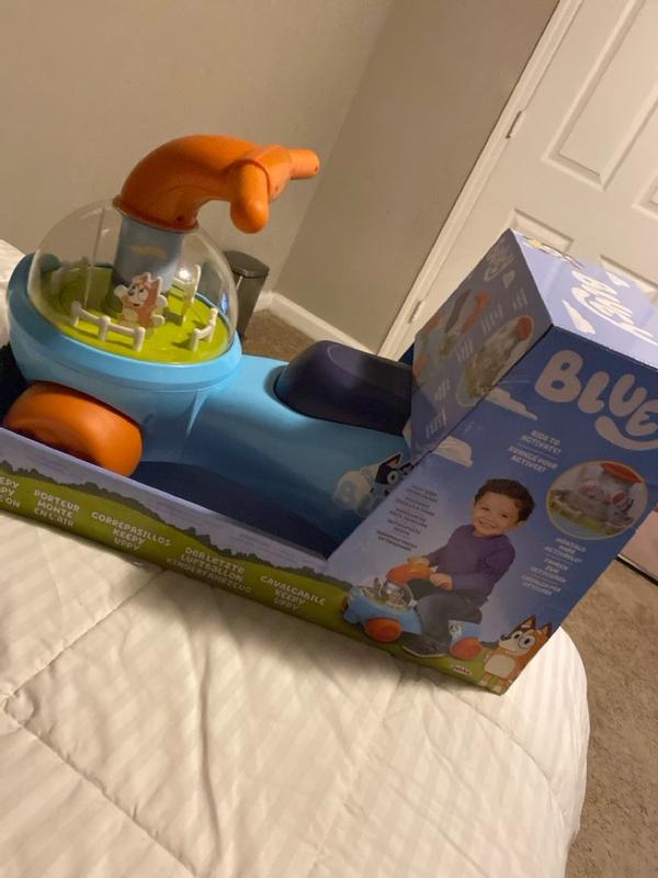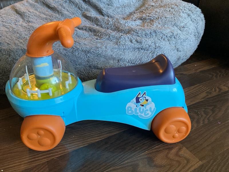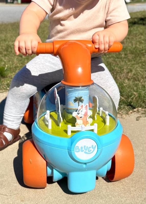 My one year old really liked this! He of course is a big fan of bluey (who isn't??) and immediately recognized the characters. I really love that the characters spin in a circle as you scoot, playing "keepie uppie". He has never had a toy like this before and he immediately took to it and knew he was supposed to sit and scoot so it seems easy enough for kiddos to get the hang of quickly. The one caution I have- make sure they are holding the handlebars while scooting. Those big noggins are hard to keep upright when you scoot with your hands full of goldfish!