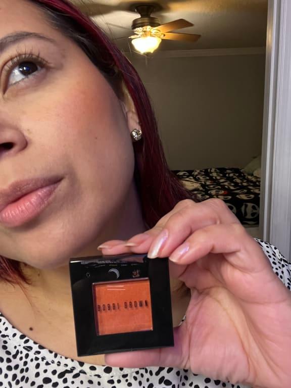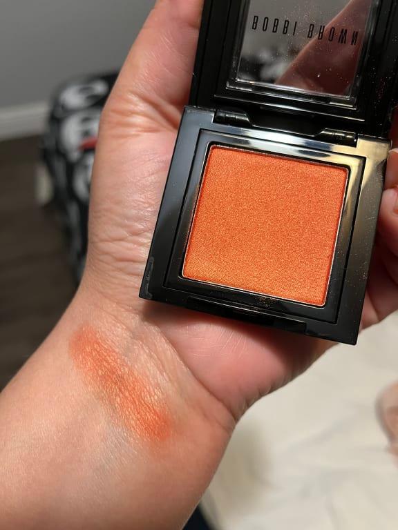 Love this Bobbi Brown Orange blush in Daybreak it goes perfectly with orangey colors. I used it for my blush and eyeshadow. It’s a really bright color so just apply with a fan brush and you get the right amount of small color. If you use it for eyeshadow also just use any eyeshadow brush appropriate for the part of the eyelid you are applying it to. The blush goes on smoothly and color is even. It’s sorta creamy. It’s definitely high quality. I am so glad I bought it. I highly recommend it. Don’t be scared of how bright it is it doesn’t look like that on. I’m fair skinned and blonde and it looks great on me!