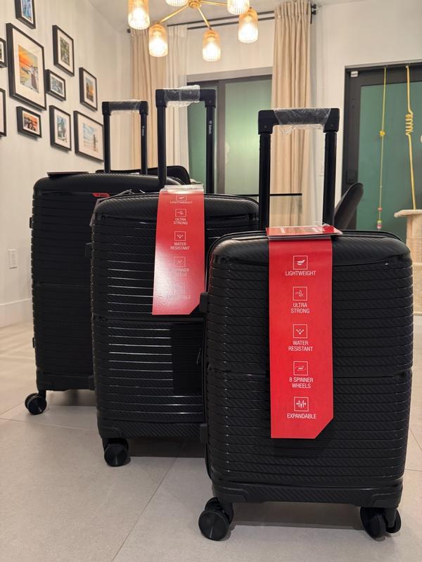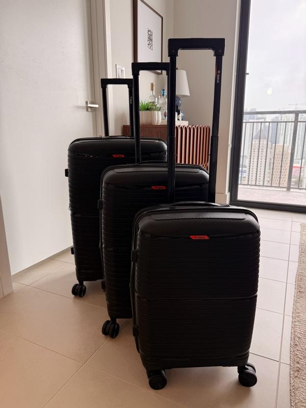 First time I see this brand and I’m super impressed with the quality. They are lightweight but strong. The incorporated lock is really nice so no need for one. The wheels are super soft and rotate 360. It comes in 3 sizes super convenient for short and long trips. Definitely a nice addition to any household.