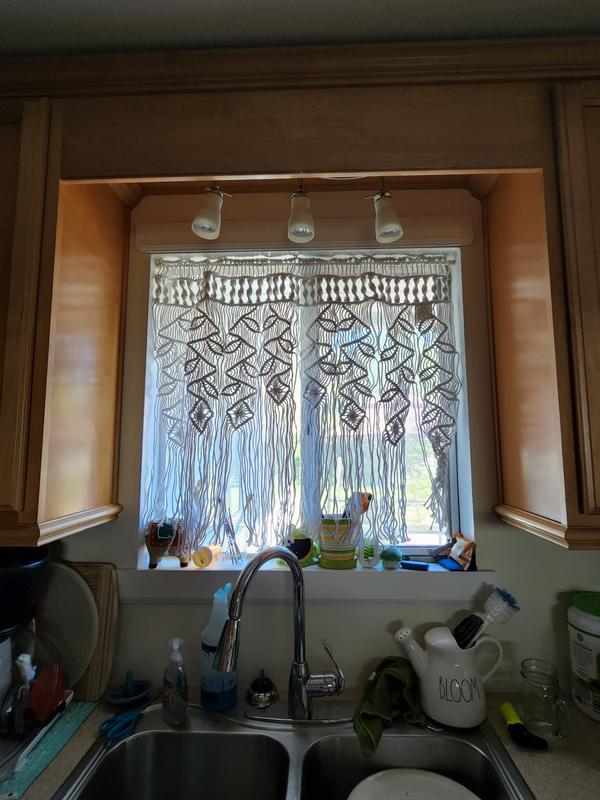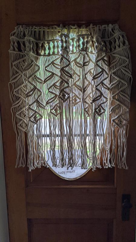 I got this Boho Macrame Leaf Cotton Valance for my kitchen window. I was not a fan of it. It is cute in theory, but once I put it up, it did not look good at all. The valance was hard to figure out how to put on the curtain rod at first because I was not sure where it was supposed to go. Once on the curtain rod, the valance was very bunched up and did not look good hanging. It was also as long as my smaller kitchen window.