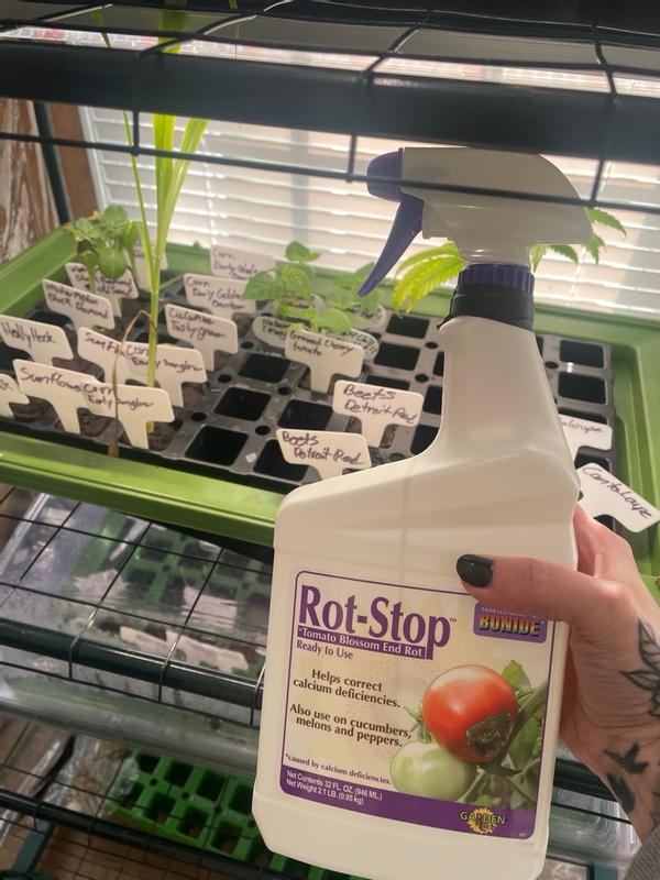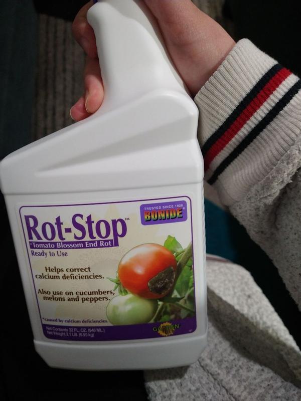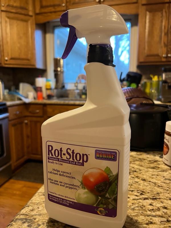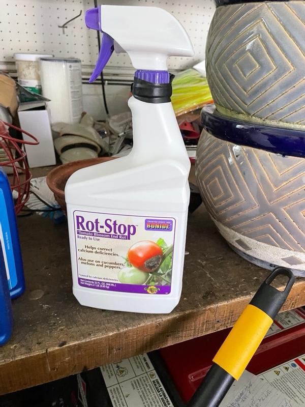 I love to garden and sometimes things don't go as expected. Rot stop by bonide is a great fix when your tomatoes have a calcium deficiency. It'll help keep your tomatoes from rotting. It comes in a 32 fl oz bottle with a spray nozzle, making it easy to spray your plants. You can use it with peppers and cucumber plants as well.