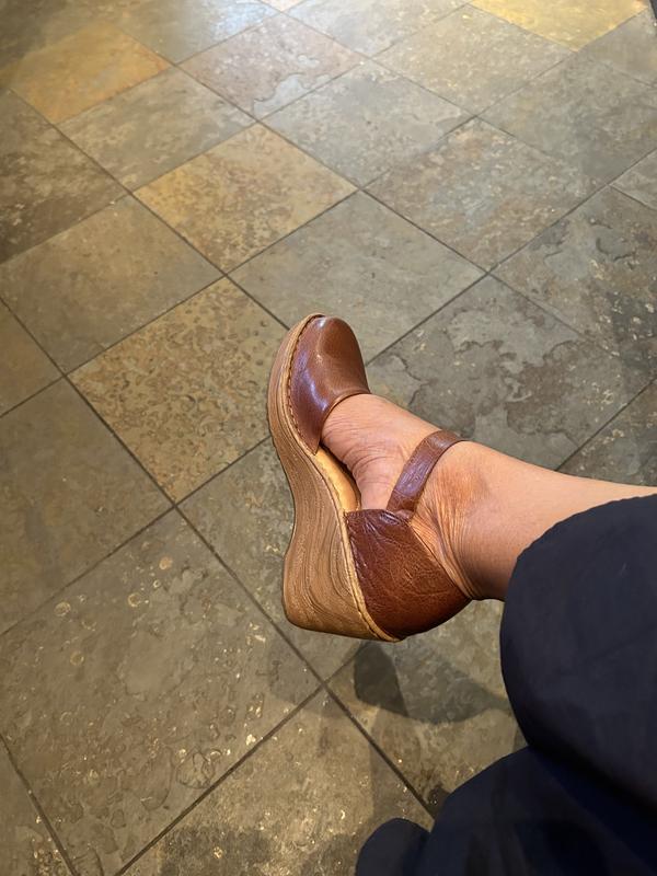 Mary Jane wedge with signature make the Natalie a new Born essential. You will love the easygoing feel of this textured, charming wood-inspired wedge.