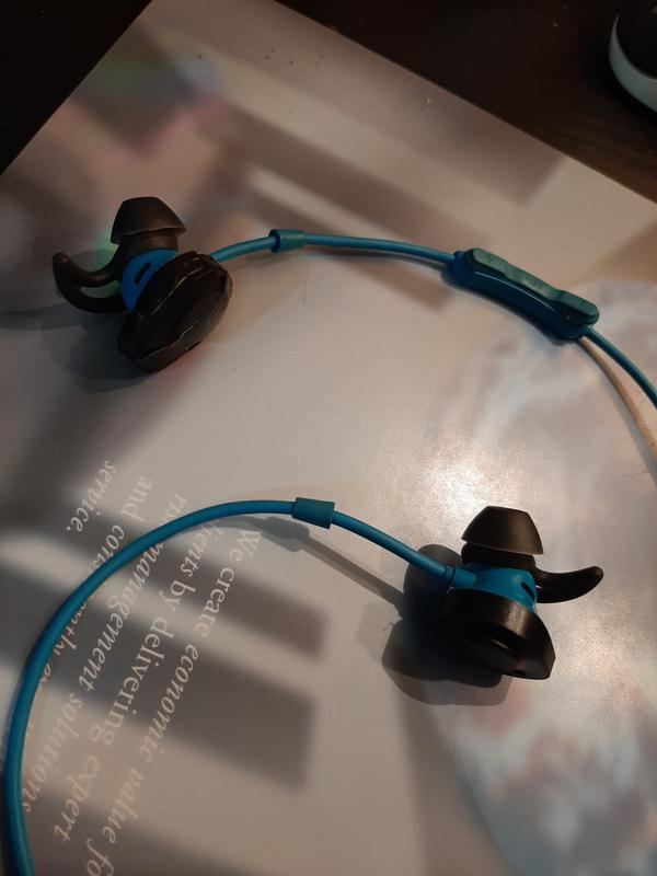 They are slightly louder than Bose SoundSport, both are good ! stick to the ears, comfortable even when i run or workout at the gym Very happy. Highly recommended !
