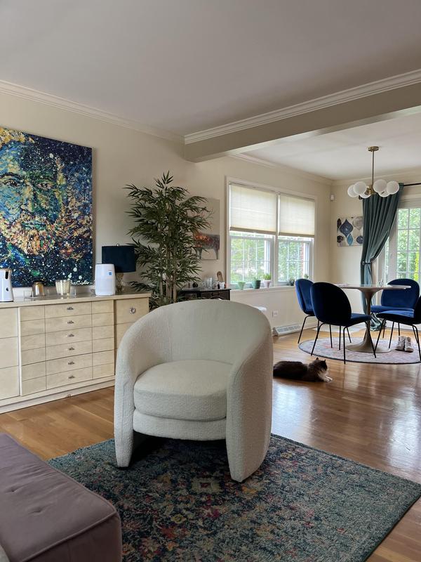 I absolutely love this chair. It is so stunning and so spacious. Such an aesthetically pleasing chair while also comfortable that you can sit on with whatever position and read a good book and lounge. 5/5