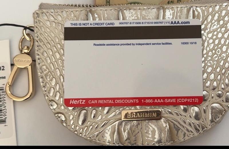 This is a great accessory and matches several Brahmin bags that I carry. The Britt holds my money, change, rain scarf and adds a complimentary look to my Brahmins.