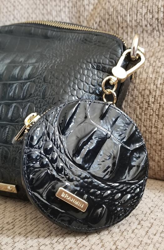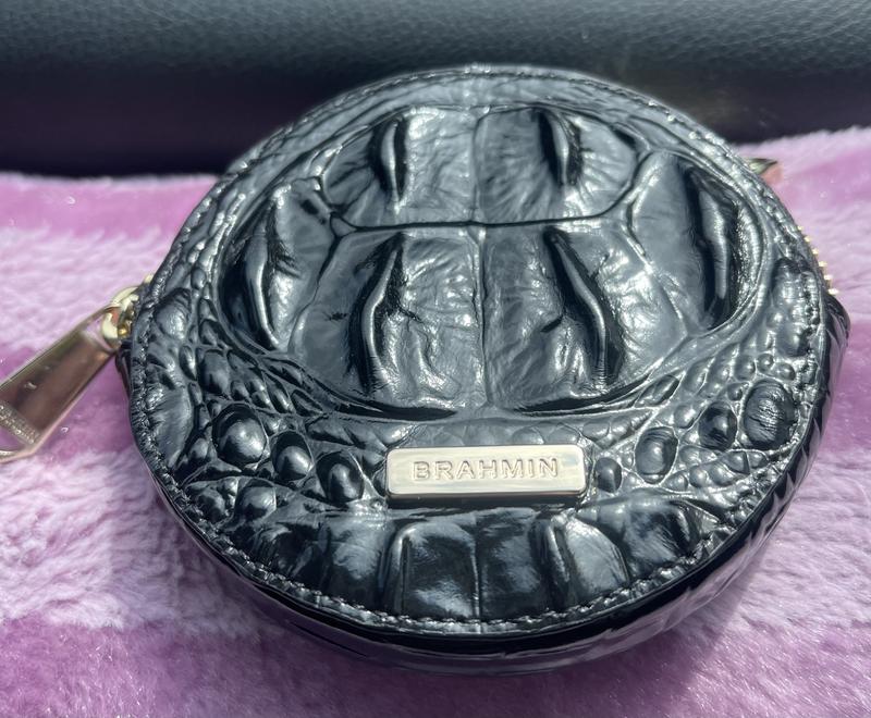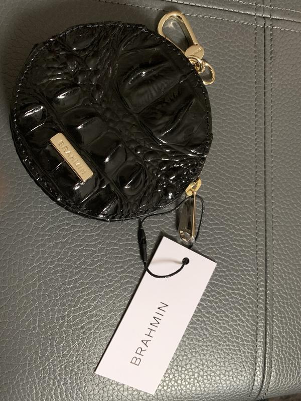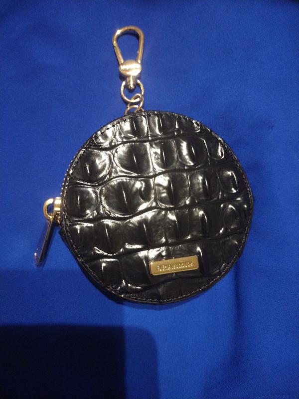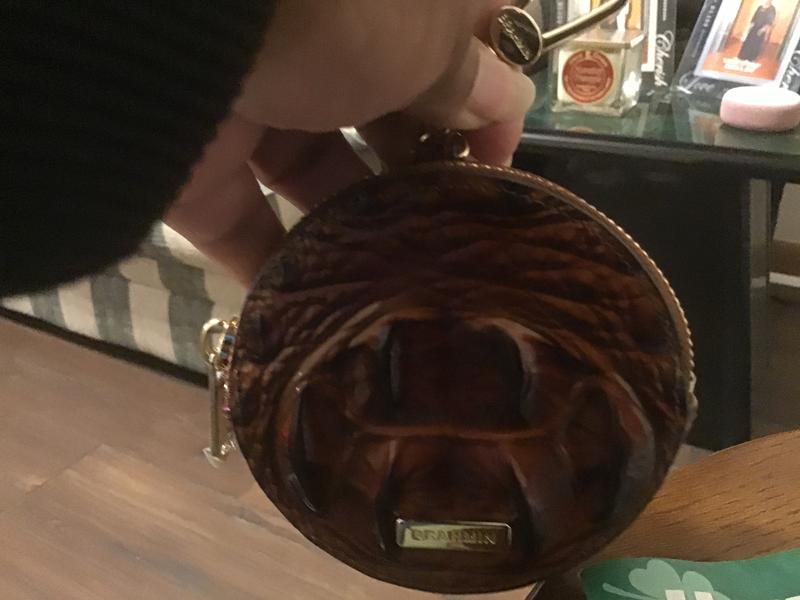 I feel like I may have gotten a very old item. It has no shine. I am also not a fan of the eye and it one is covering the whole front of the item. At least it is centered well. This item is a bit larger than expected, even though I saw the measurements, it is still huge. \n\nI got this since the zip pockets on my Skyler are too deep and hard to get change from them quickly. I have this clipped to my bag but really can\'t use it with the Skyler and not my handbag. \n\nI have decided to keep it. It holds a lot of change and could easily hold some folded bills, maybe even a credit card. I would like to get a smaller coin purse that can fit inside a Skyler, but this will do of the time being.