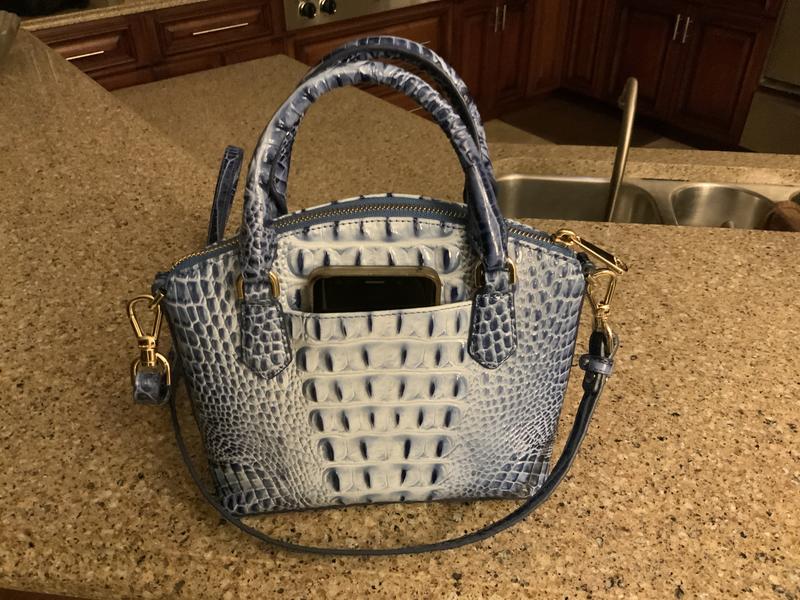 I am in love with this purse. I thought it would be too small but it\'s perfect for essentials. I love the handles and option to add the cross body strap. It is so versatile. And when I travel it fits in my briefcase when boarding the plane--the whole reason I love Brahmin cross body style. And the blue is my new favorite Brahmin color.